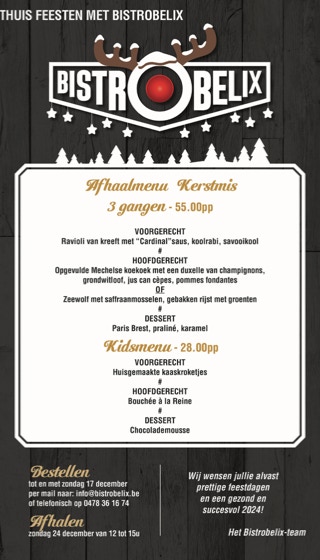 Kwalitatieve gerechten, lokale producten en (h)eerlijke wijnen vormen de hoekstenen van onze authentieke Belgische bistro. Wij ontvangen u graag in een ongedwongen sfeer en hopen dat u hier van een gezellig tafelmoment zult genieten.